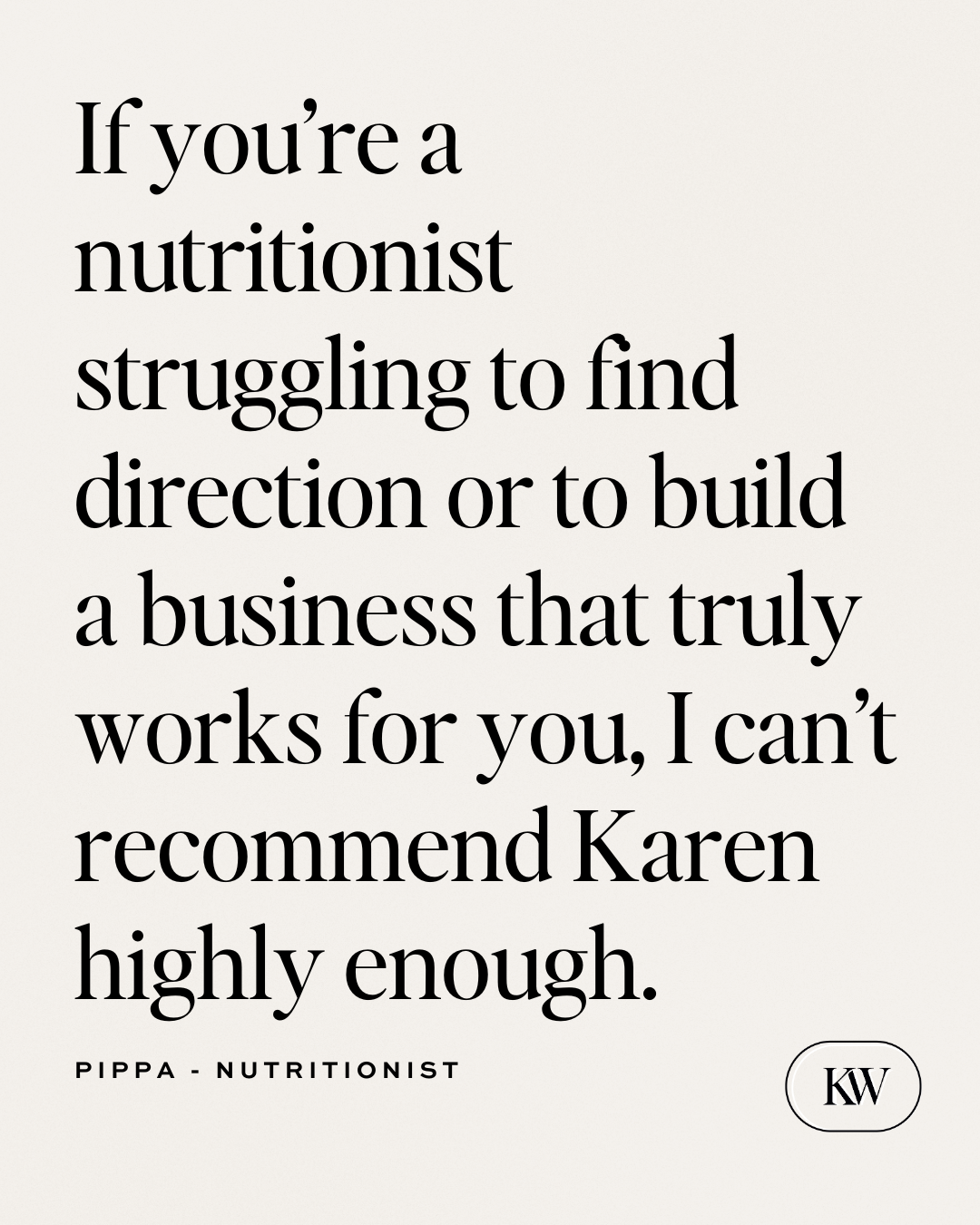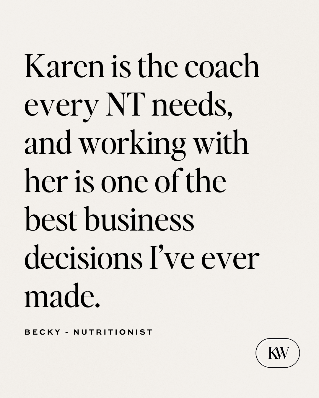 Karen is a highly successful nutritional therapist and business coach who helps newly qualified nutritionists and nutritional therapists build profitable and sustainable practices, so they can reach more people that need help.